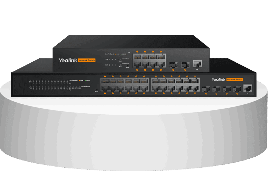 מתג AV של Yealink כמו ה-RCH80 או ה-RCH240 הוא מתג רשת ייעודי המיועד למערכות אודיו-ויזואליות מודרניות מעל IP (AVoIP) במיוחד פתרונות של Yealink עצמה (AVONE) ואחרים המשתמשים בתקנים כמו Dante/AES67
