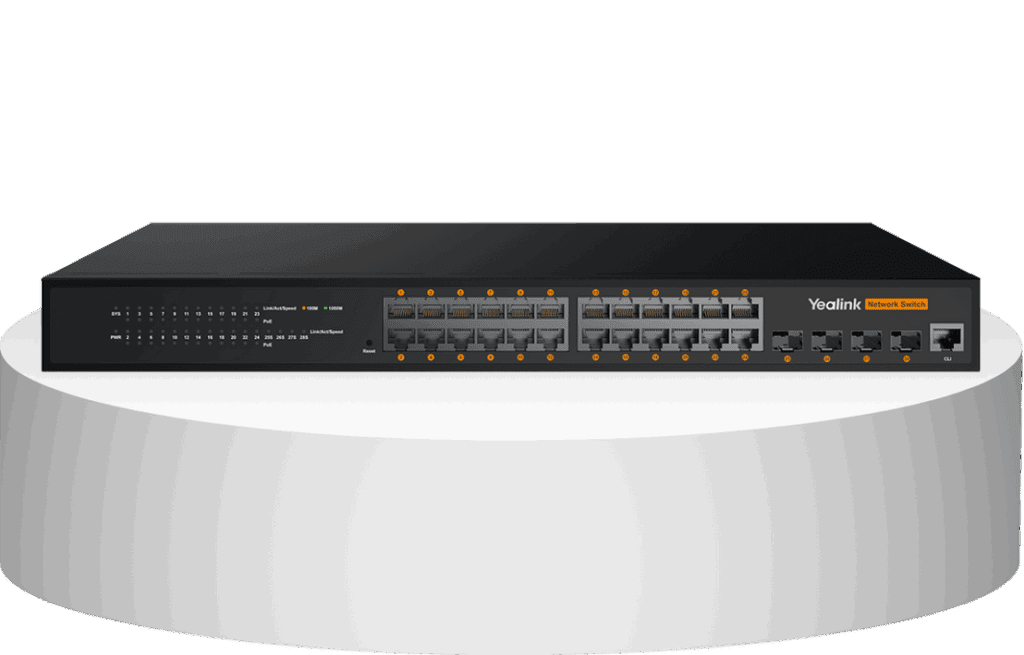 ה- Yealink RCH240 הוא מתג בעל 24 פורטים מנוהל אינטרנט +L2 המיועד לסביבות AV over IP בעלות ביצועים גבוהים. הוא מותאם לפרוטוקולי AV של Yealink וכן לתקני תעשייה כגון Dante ו- AES67 ומבטיח קישוריות חלקה ברוחב פס גבוה עבור מערכות MTR של Yealink, מצלמות, ציוד Pro Audio ומקודדים/מפענחי AVoIP של Yealink כגון EN300 / DE300 עם תקציב הספק +PoE של 370W. בעל 4 יציאות SFP ואופטימיזציה מתקדמת של שידור מרובה (GMP Snooping, Fast Leave) ה- RCH240 מספק את הקיבולת, האמינות וגמישות הניהול הנדרשות בחדרי ישיבות מודרניים ובפריסות AV מקצועיות.
